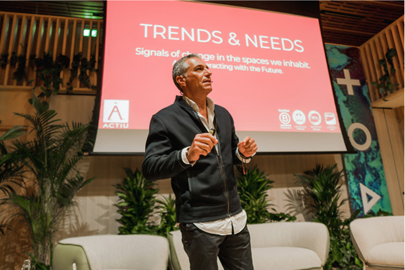 Dentro de ese marco, Actiu participó activamente con Gustavo Valbuena, Director de Estrategia e Innovación, quien lideró una ponencia en la que exploró cómo las tendencias globales y las necesidades humanas están configurando una nueva forma de concebir el espacio de trabajo.