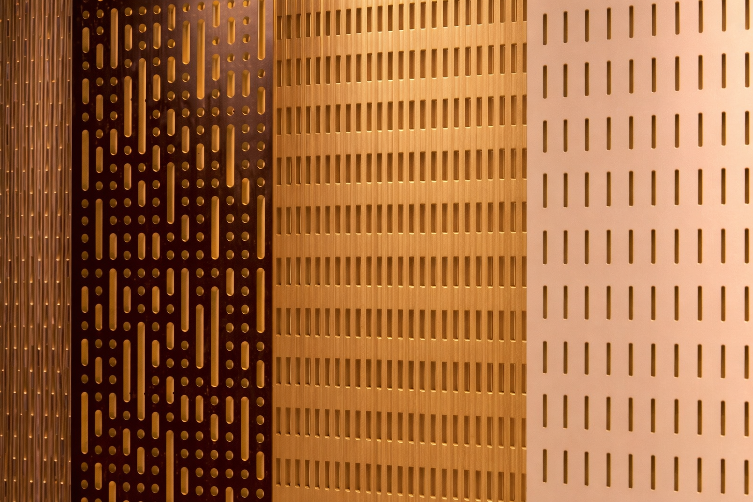 Con los paneles ranurados pueden conseguirse instalaciones con un alto grado de absorción y un acabado estético de alto nivel a un coste medio. Con las diferentes variantes de patrones y anchos de ranuras pueden conseguirse diferentes niveles de absorción y resultados estéticos.