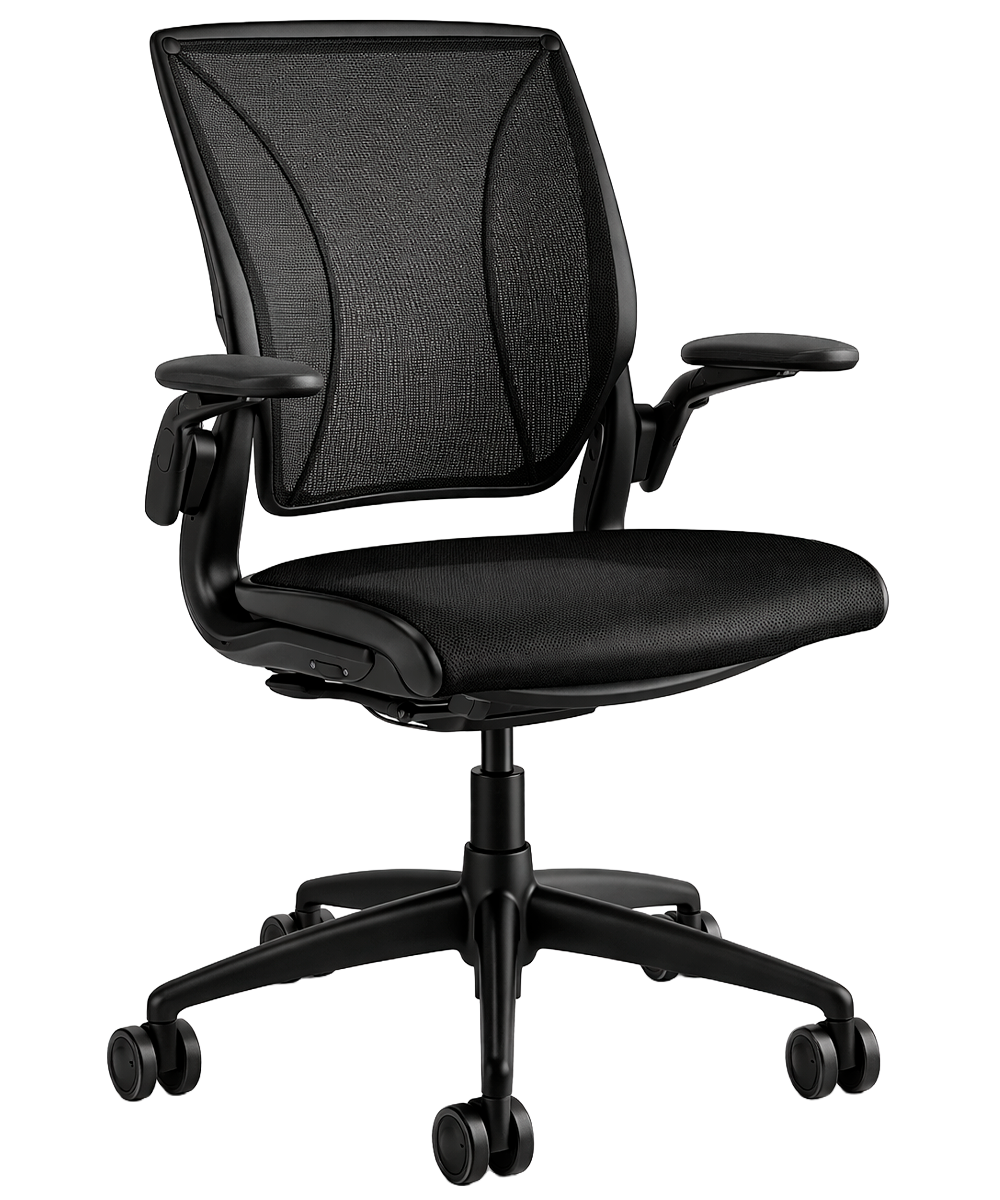 La World de Humanscale está diseñada para ofrecer ergonomía avanzada con una operación intuitiva. Su mecanismo reclinable sensible al peso se adapta automáticamente al usuario, permitiendo un movimiento natural sin necesidad de ajustes manuales, lo que reduce errores de uso y favorece una postura activa durante el 100% de la jornada laboral.