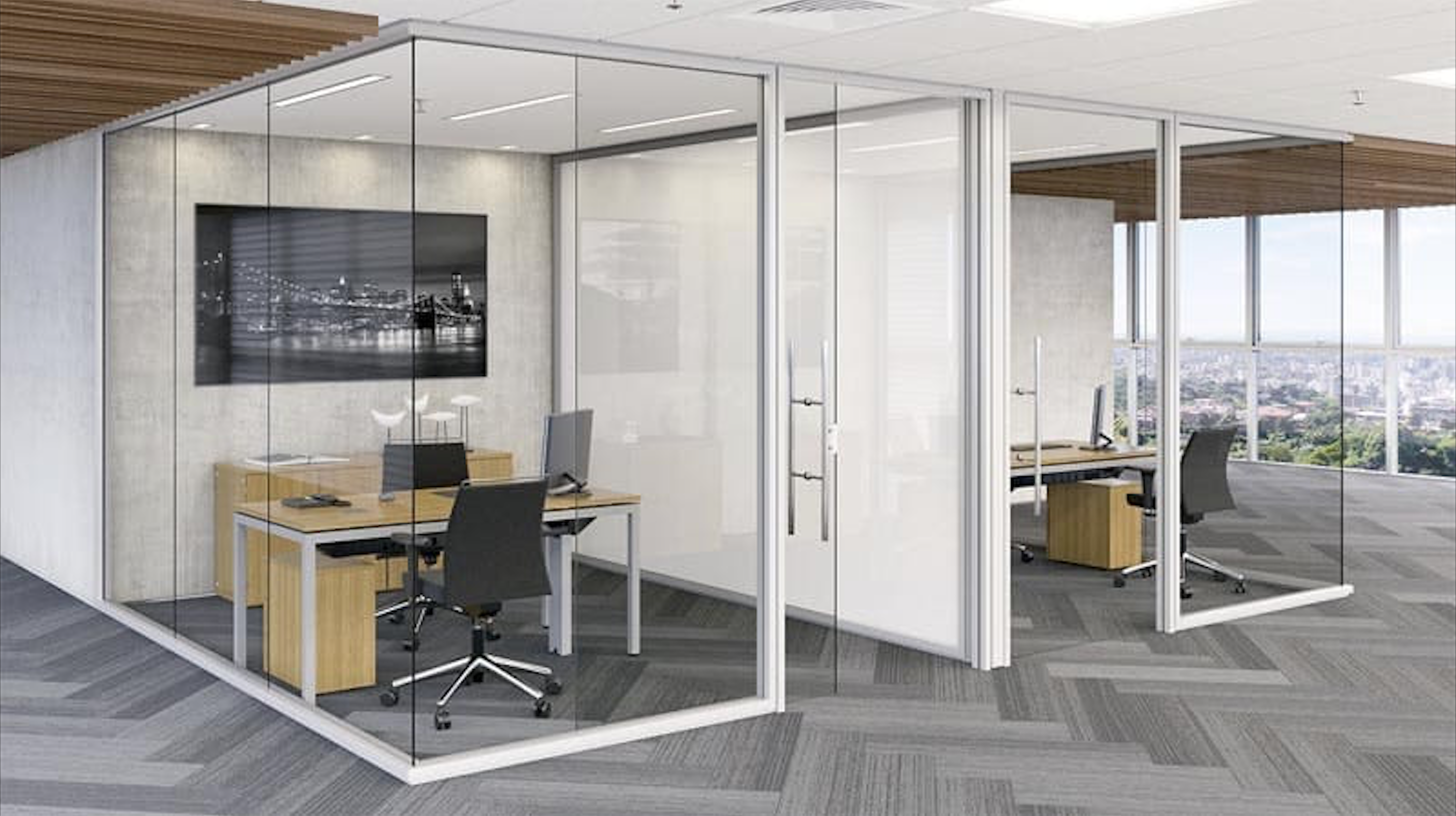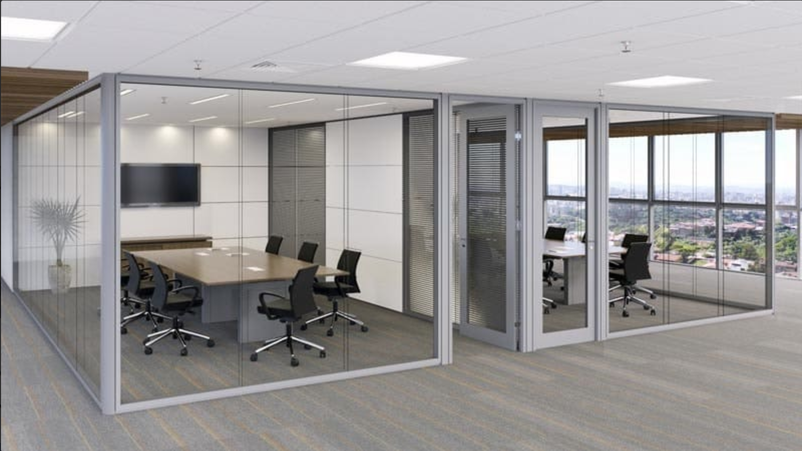 El sistema de particiones NS ofrece flexibilidad, transparencia e insonorización adecuadas para su proyecto corporativo.