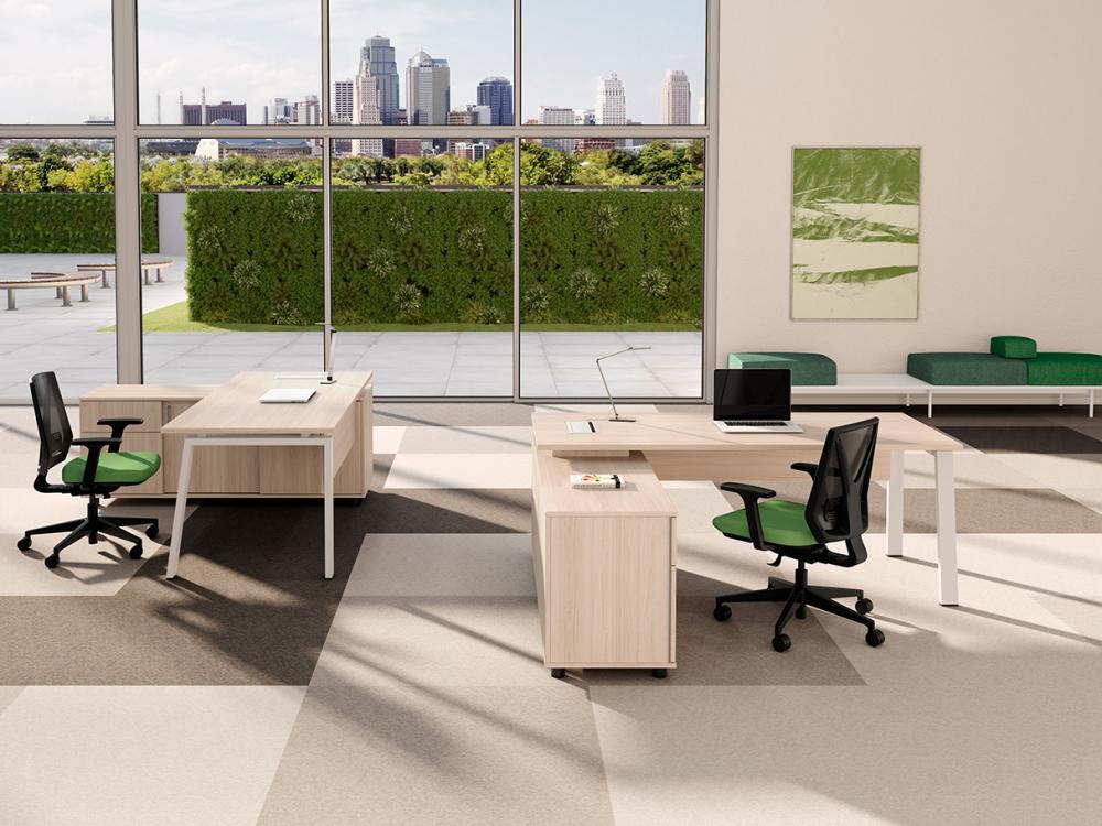La mesa de trabajo de la línea Pluri se presenta en diferentes tamaños y fue diseñada para adaptarse a diferentes ambientes.