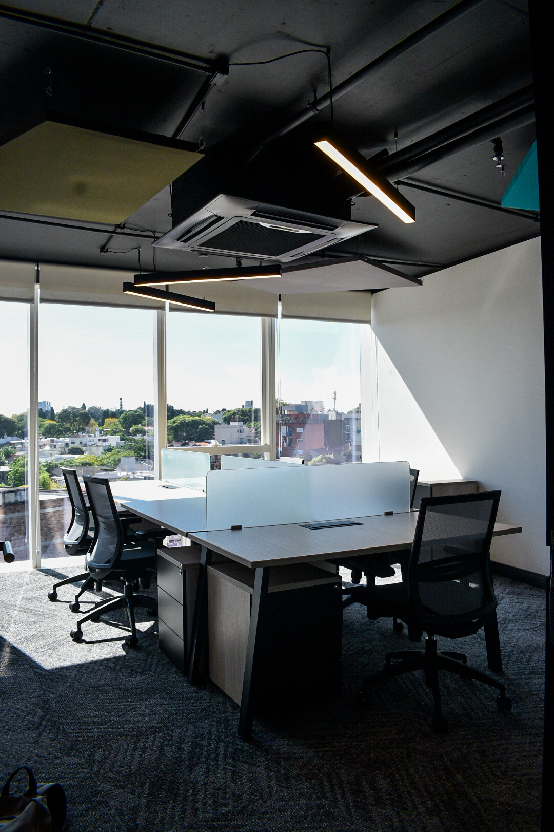 Con varios tipos de productos, la línea Pluri puede crear diferentes ambientes. Su estructura de tubo de acero rectangular tiene cuatro tipos de pies: rectos, compás, compás con madera y marco, además de poder contar con ruedas para algunos modelos.